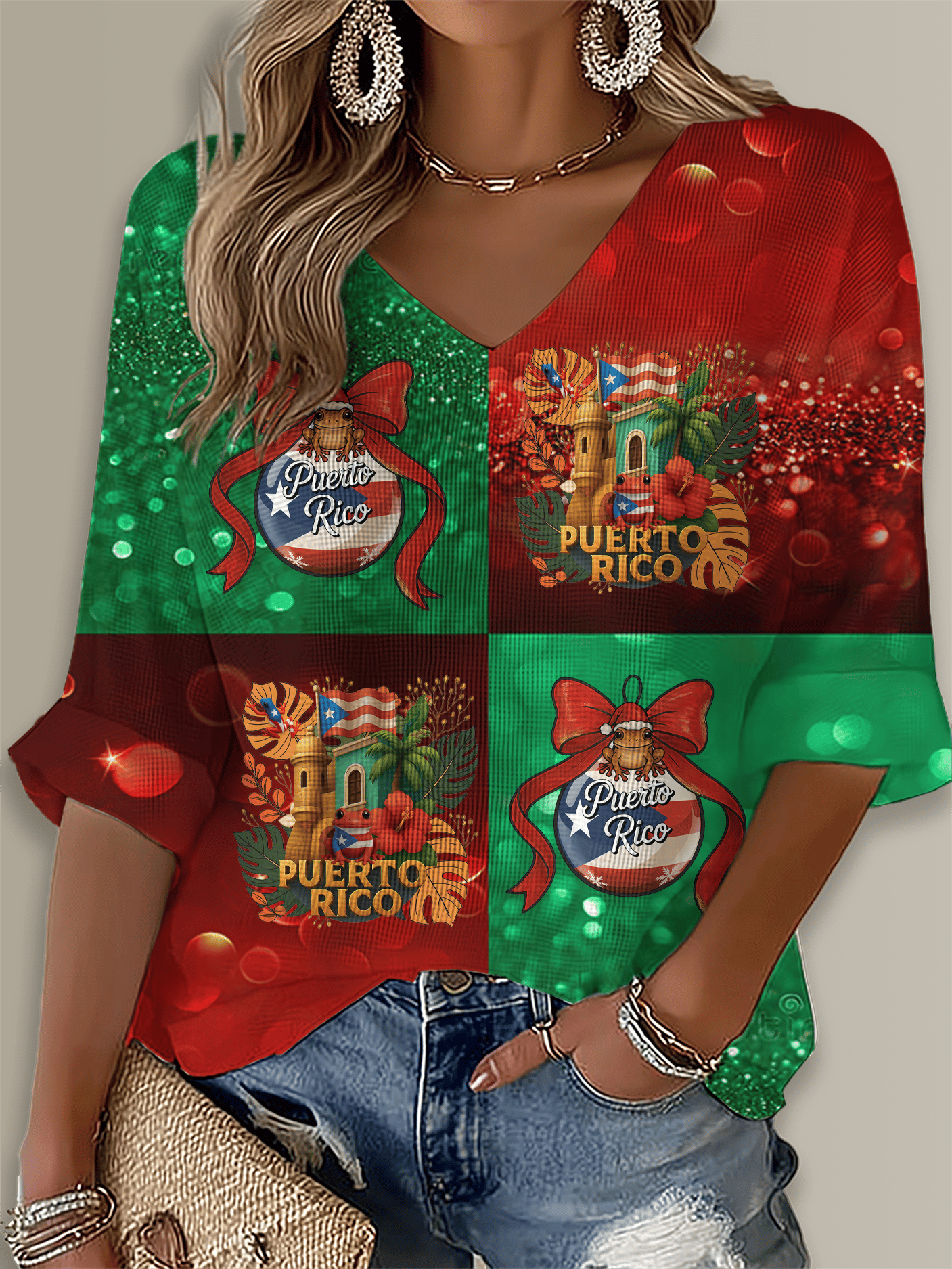 Puerto Rico Li Navidad Christmas Printed Long Sleeve Top