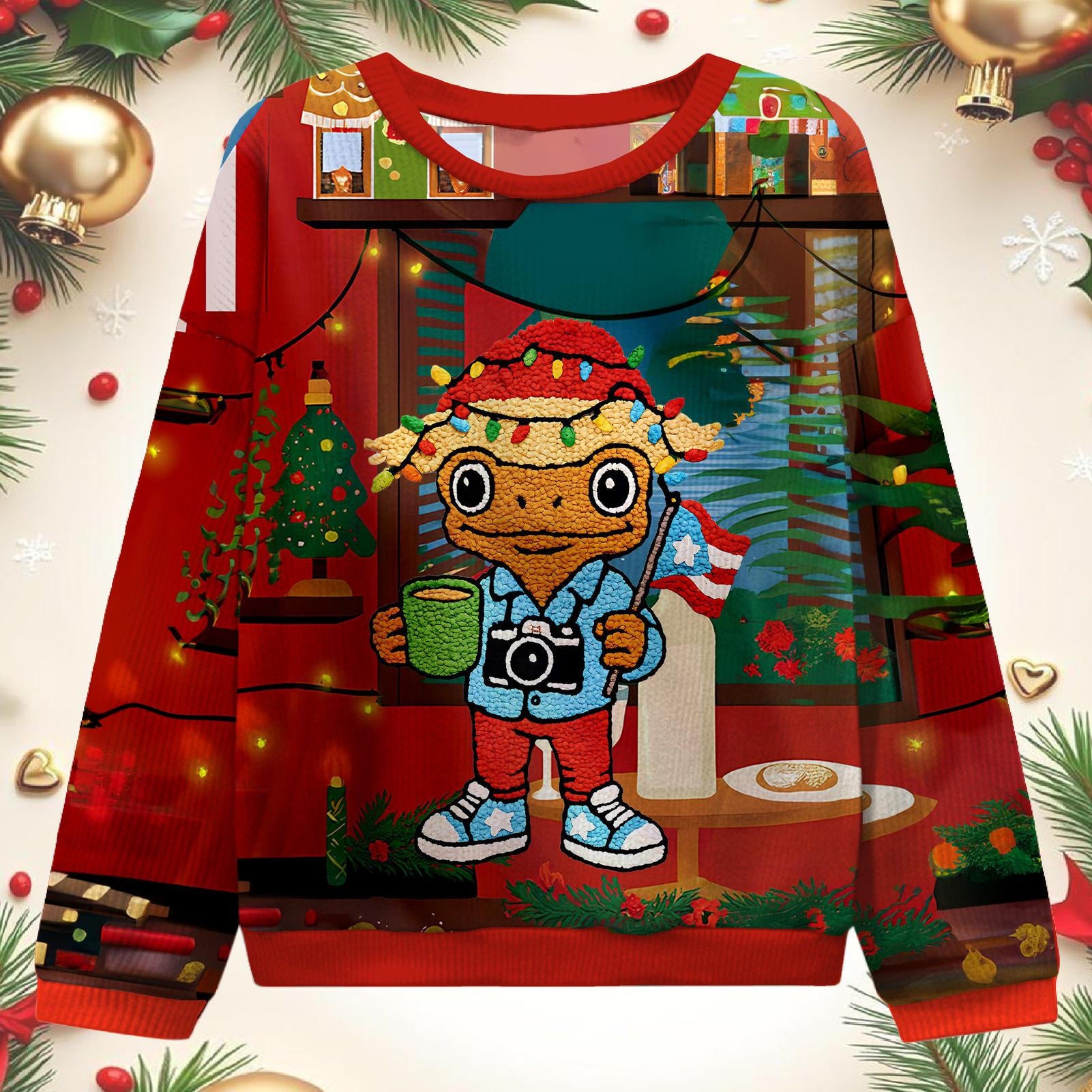 Puerto Rico Singer Coquito Christmas Unisex Round-Neck Ugly Sweater