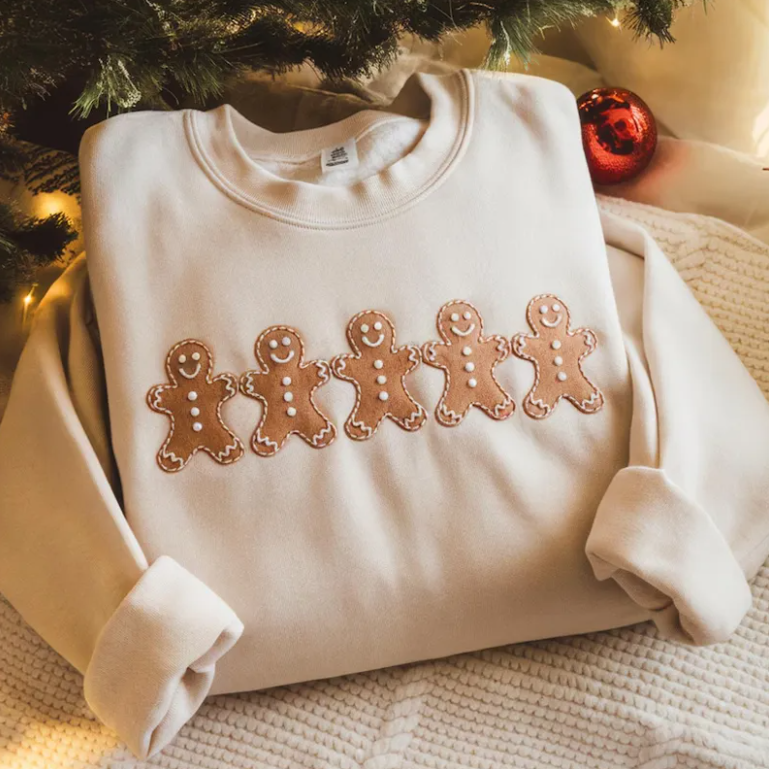 Embroidered Christmas Gingerbread Cookies Sweatshirt