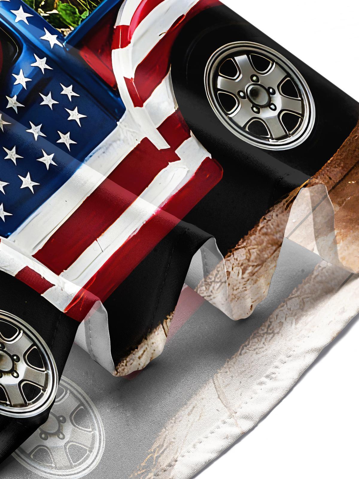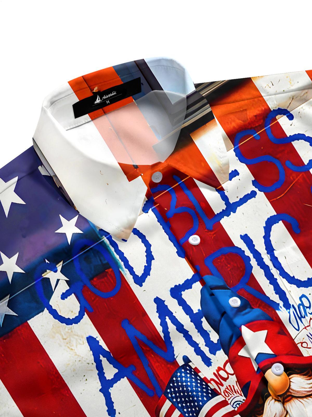 God Bless America Patriotic Flag Gnomes America Truck Independence Day Men's Pocket Short Sleeve Shirts