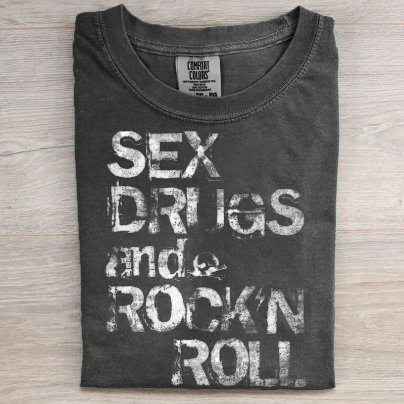 Unisex SEX AND DRUGS AND ROCK N ROLL Cotton Crew Neck T-shirt