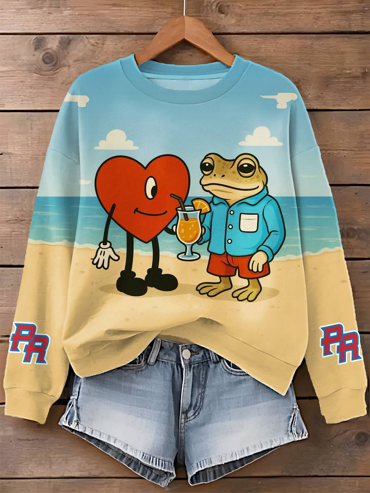 Bad Bunny Dtmf Puerto Rico Color-Block Printed Long Sleeve Casual Top