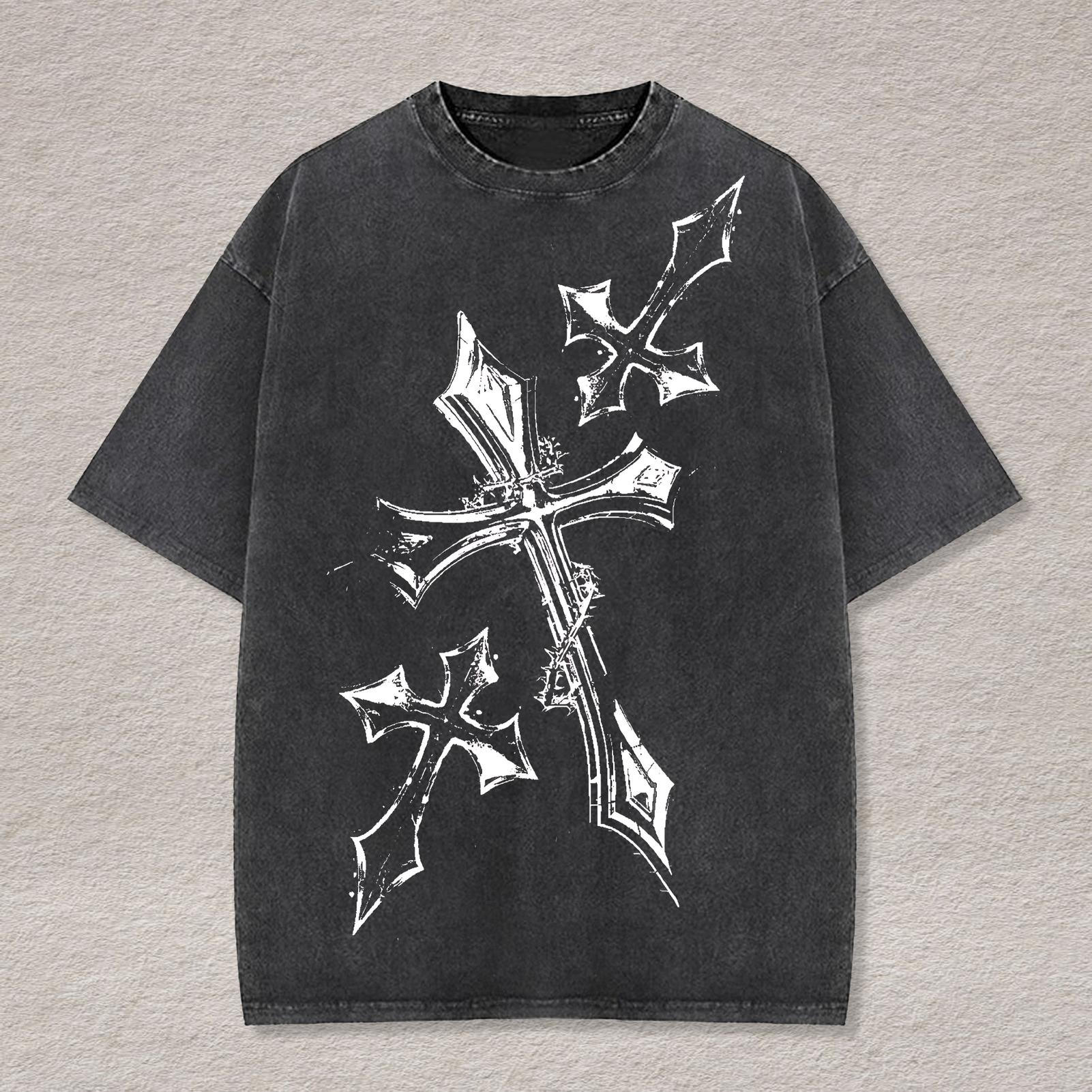 Halloween Gothic Print Washed Cotton Short Sleeves