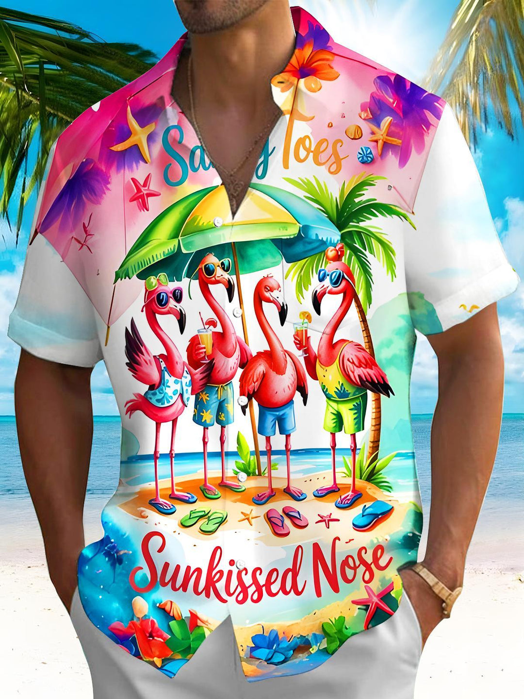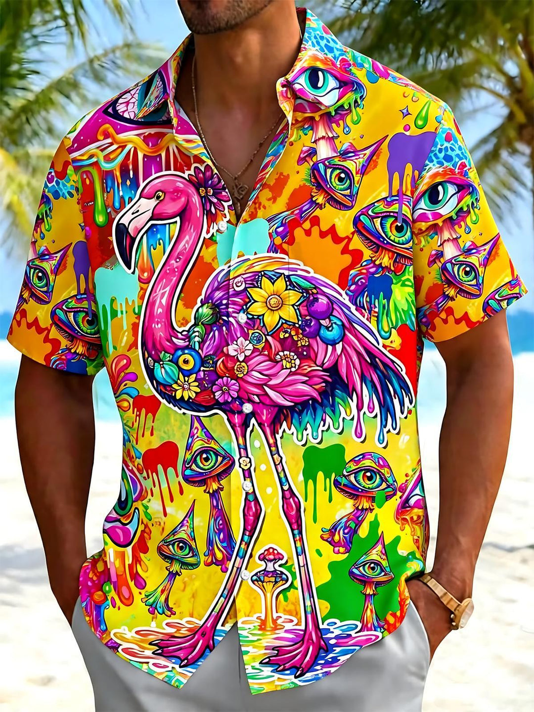 Flamingo Hawaiian Print Men...