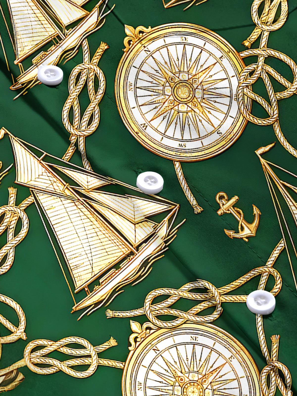 Retro Boat Compass Men's Pocket Short Sleeve Shirts